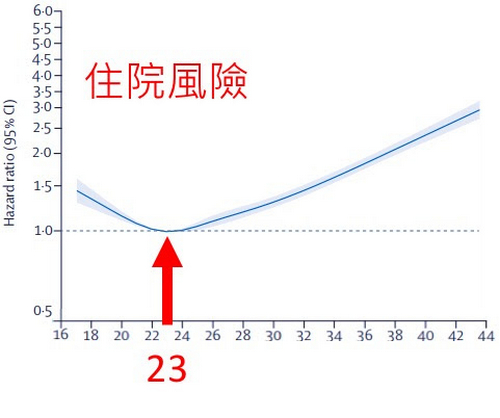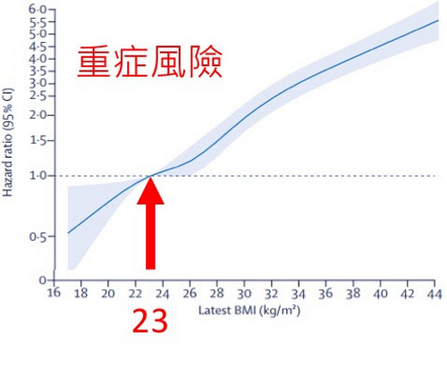 BMI大於23的患者,住院和罹患重症的風險將會大幅上升