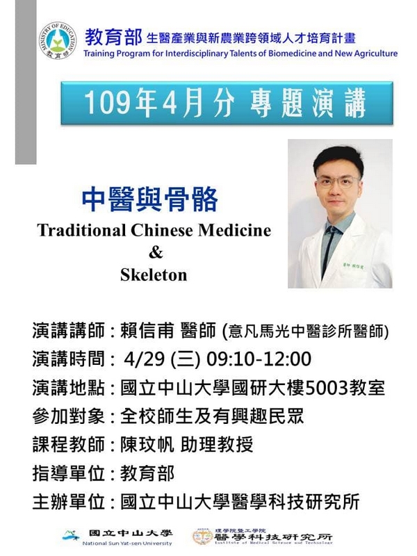 國立中山大學醫學科技研究所演講「中醫與骨骼」