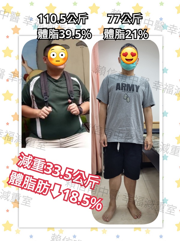 恭喜H先生,減重33.5公斤、體脂肪⬇18.5%