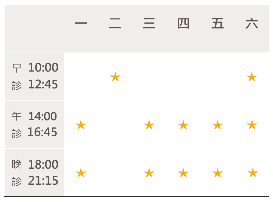 【內科】:失眠、掉髮、胃食道逆流、過敏性鼻炎、咳嗽氣喘、眩暈、頭痛、便秘、腸躁症、高血壓、高血脂、糖尿病、癌症調養、兒童生長障礙